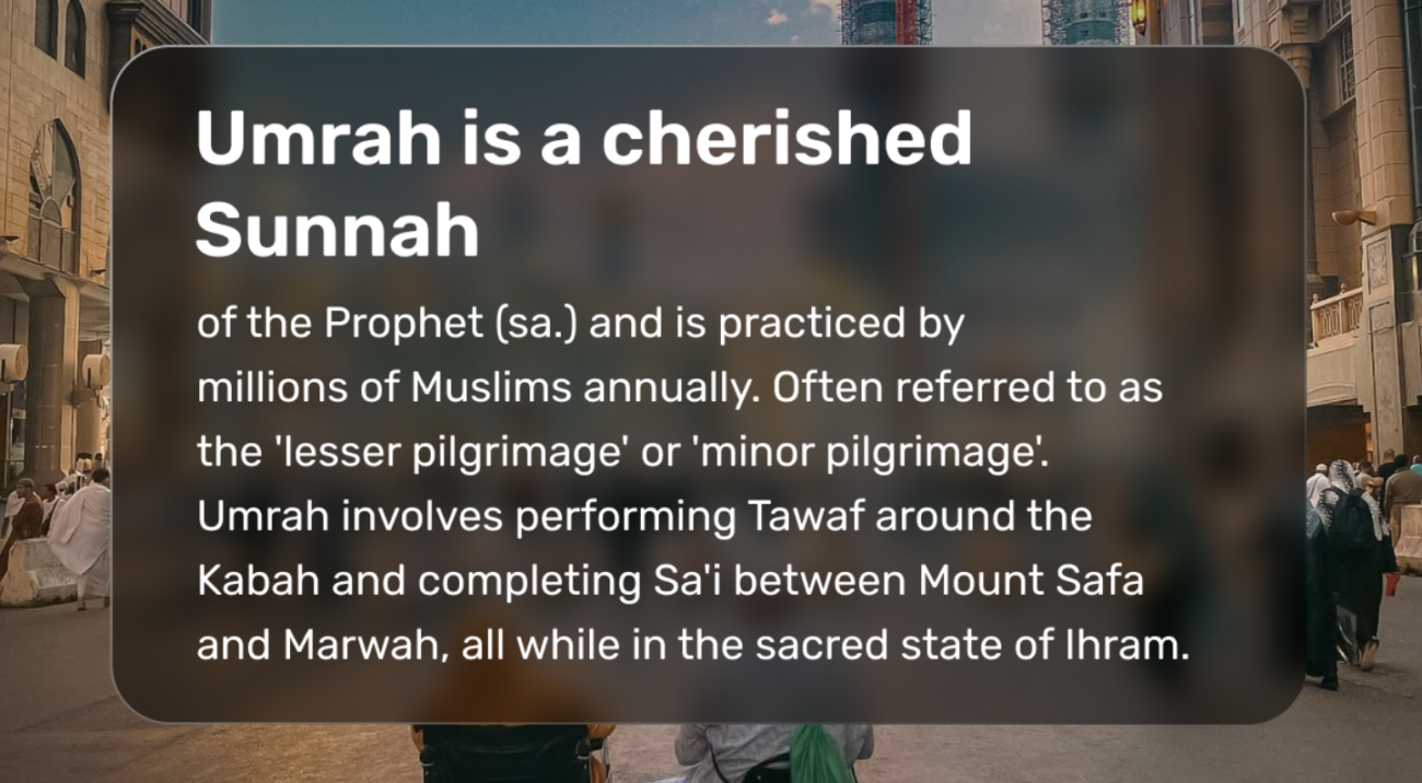 Umrah is a beautiful Sunnah of the Prophet (SAW), and millions of Muslims perform it every year. While it’s often called the ‘lesser pilgrimage,’ it holds incredible rewards. During Umrah, you do the Tawaf around the Kaabah and complete Sa’i between Safa and Marwah—all while in the sacred state of Ihram.