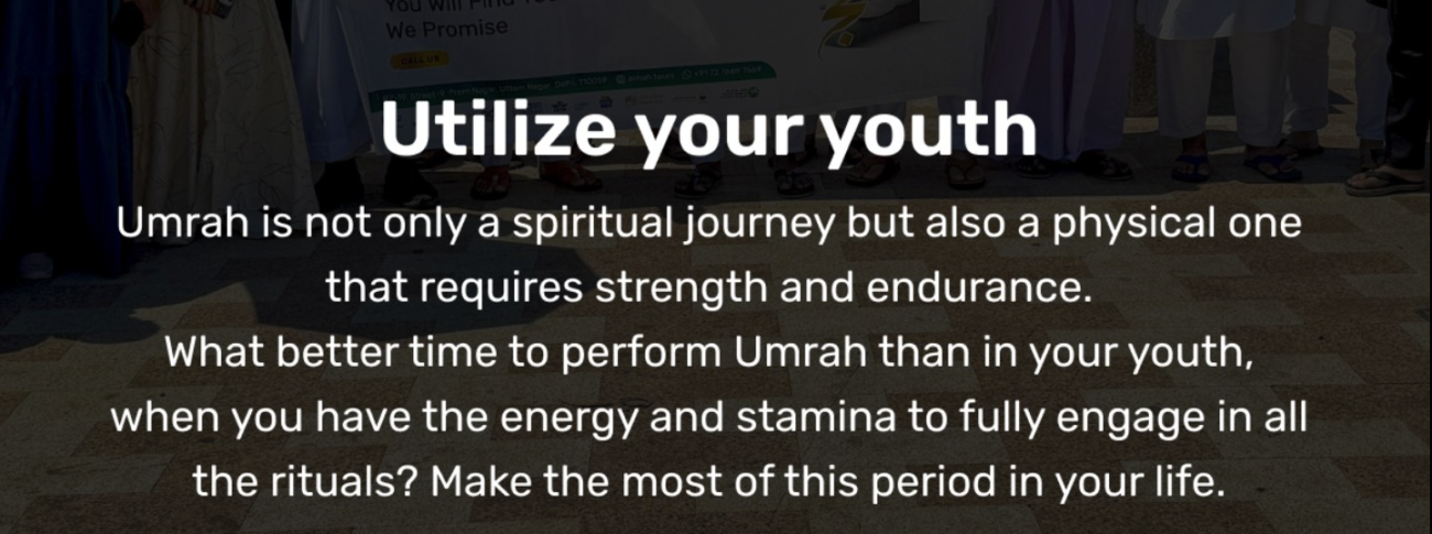 Umrah isn’t just a spiritual journey—it’s also a physical one. It requires energy, strength, and endurance. So, what better time to perform Umrah than in your youth, when you have the energy to fully engage in all the rituals? Don’t wait for later; now is the best time!